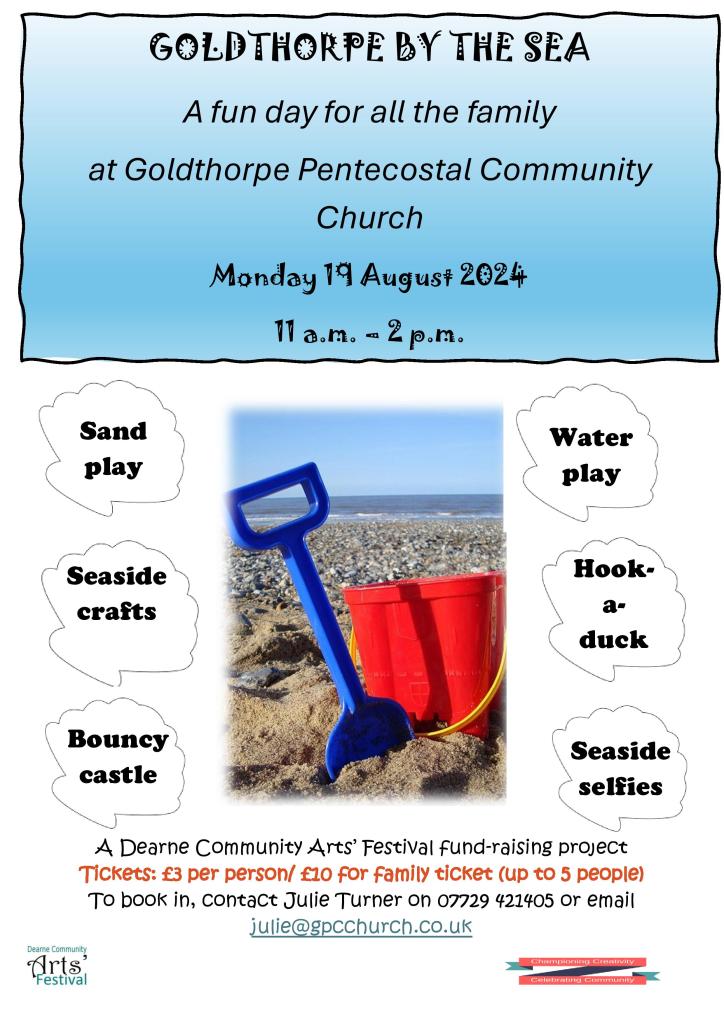 The event will be a family fun day bringing the seaside to Goldthorpe, with sand play, water play, puppet show, seaside-themed crafts and bouncy castle. Lots of ‘arcade-type’ games to play and lunch provided.