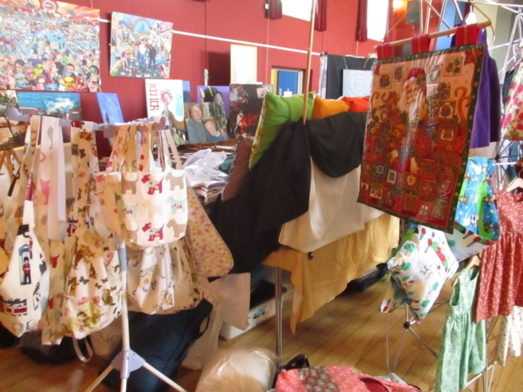 We were privileged to have as performers on stage Thurnscoe Harmonic Male Voice Choir, The Grumpy Old Men, Pat & Andy Moore and dancers from Rotherhop, and it was great to have a combination of community groups (Salvation Army, Dearne Family Centres, Dearne Churches Together, hOurbank) and individuals exhibiting and selling work. Special thanks go to Angie Wapples, whose sewing skills continue to be an integral part of DCAF.