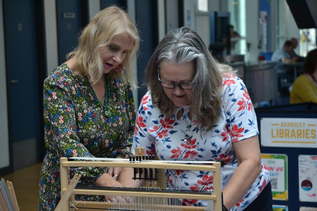 Ruth Waterworth, a local art teacher working with adults, has been involved with DCAF since the beginning in 2017 and was heavily involved in our community art project in 2019, the creation of a community mosaic. She has led workshops on silk painting, needle felting and table shaft loom weaving, giving people the opportunity to learn new skills!